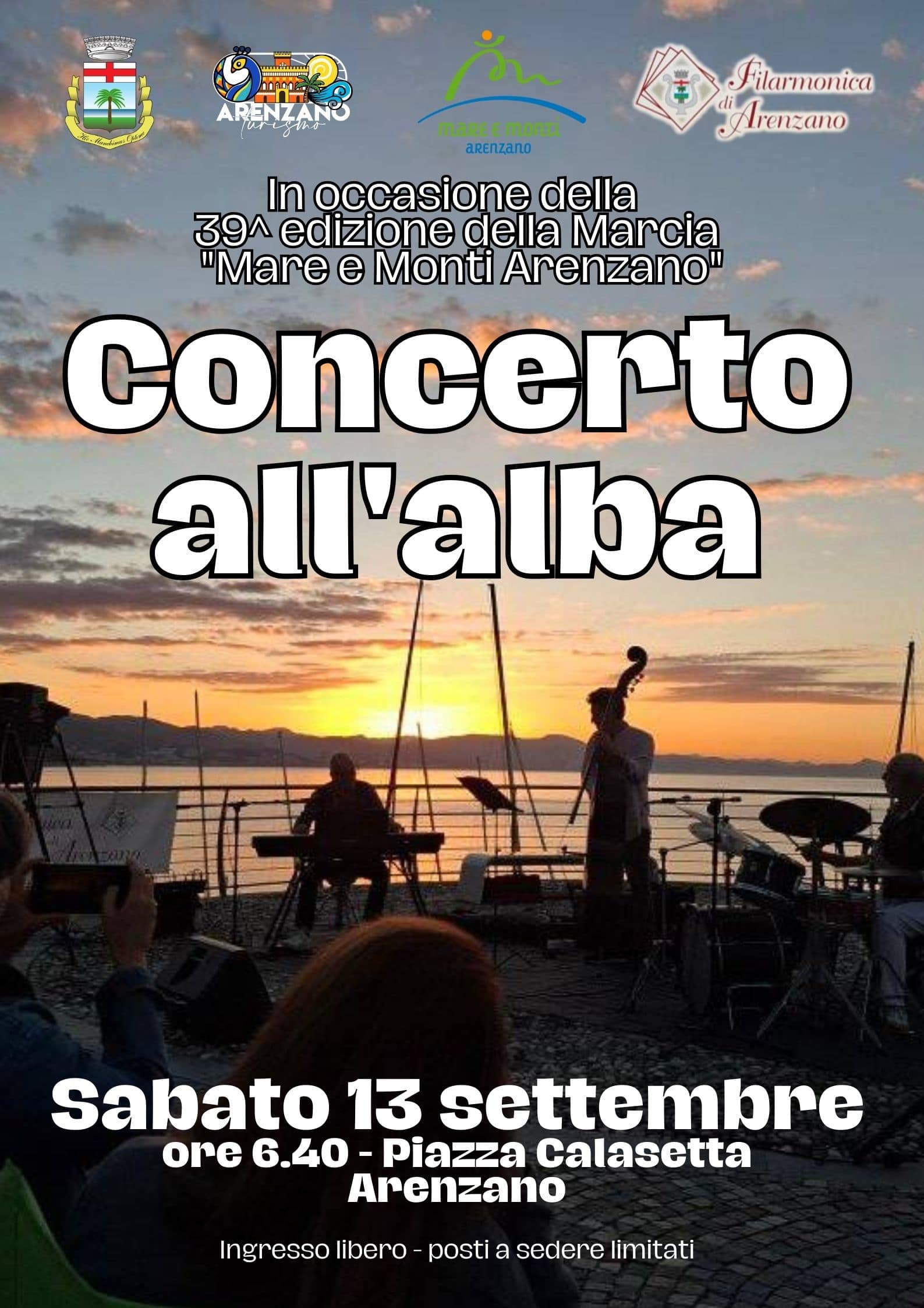 In occasione della 39^ edizione della Mare e Monti Arenzano, si rinnova l'appuntamento con lo spettacolo del sorgere del sole, accompagnato dal suggestivo concerto all'alba.