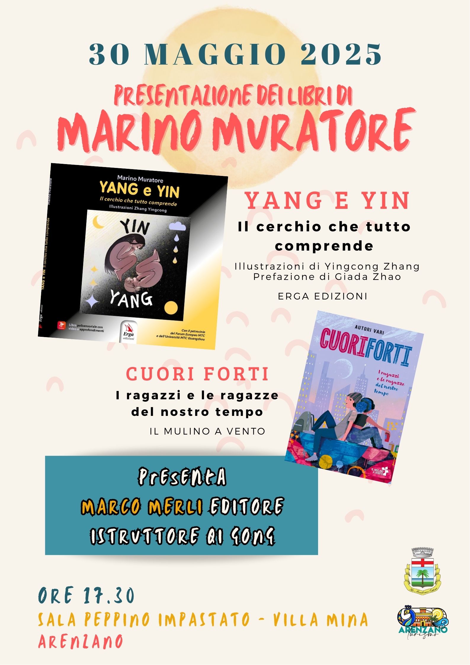 In occasione dell'iniziativa "Il Maggio dei Libri", che celebra l'importanza della lettura come strumento di conoscenza e consapevolezza, capace di rendere liberi, la Biblioteca Civica "G. Mazzini" propone la presentazione dei libri "Cuori Forti - i ragazzi e le ragazze del nostro tempo"e "Yang e Yin - il cerchio che comprende tutto" di  Marino Muratore.