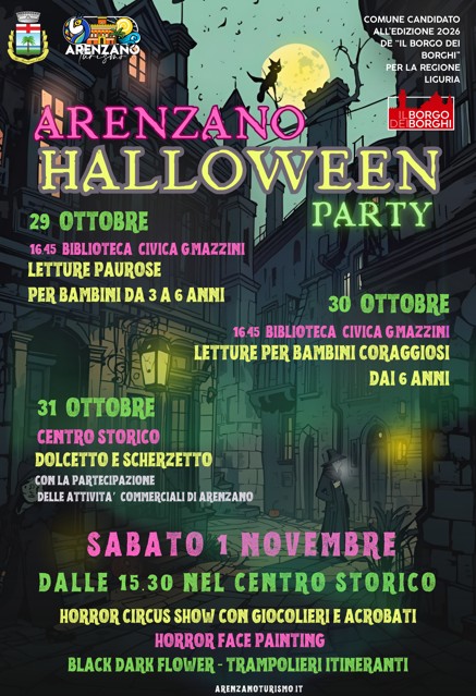 🎃 Dolcetto o Scherzetto? Venerdì 31 ottobre il centro storico di Arenzano si trasforma in un percorso incantato tra botteghe stregate, vetrine mostruose e dolci a volontà.