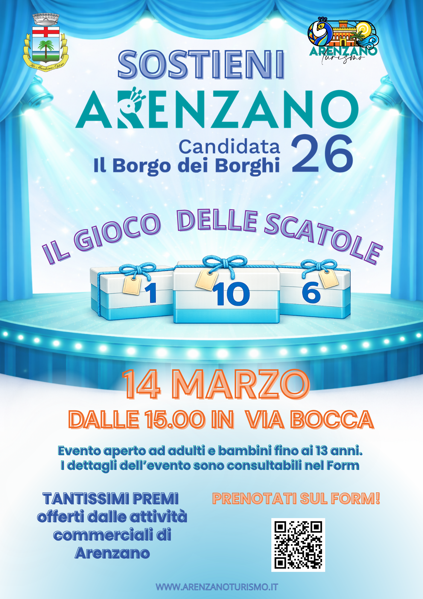 Per prendere parte al Gioco delle Scatole basta essere motivati a sostenere Arenzano nella competizione Il Borgo dei Borghi 2026 attraverso il proprio voto!