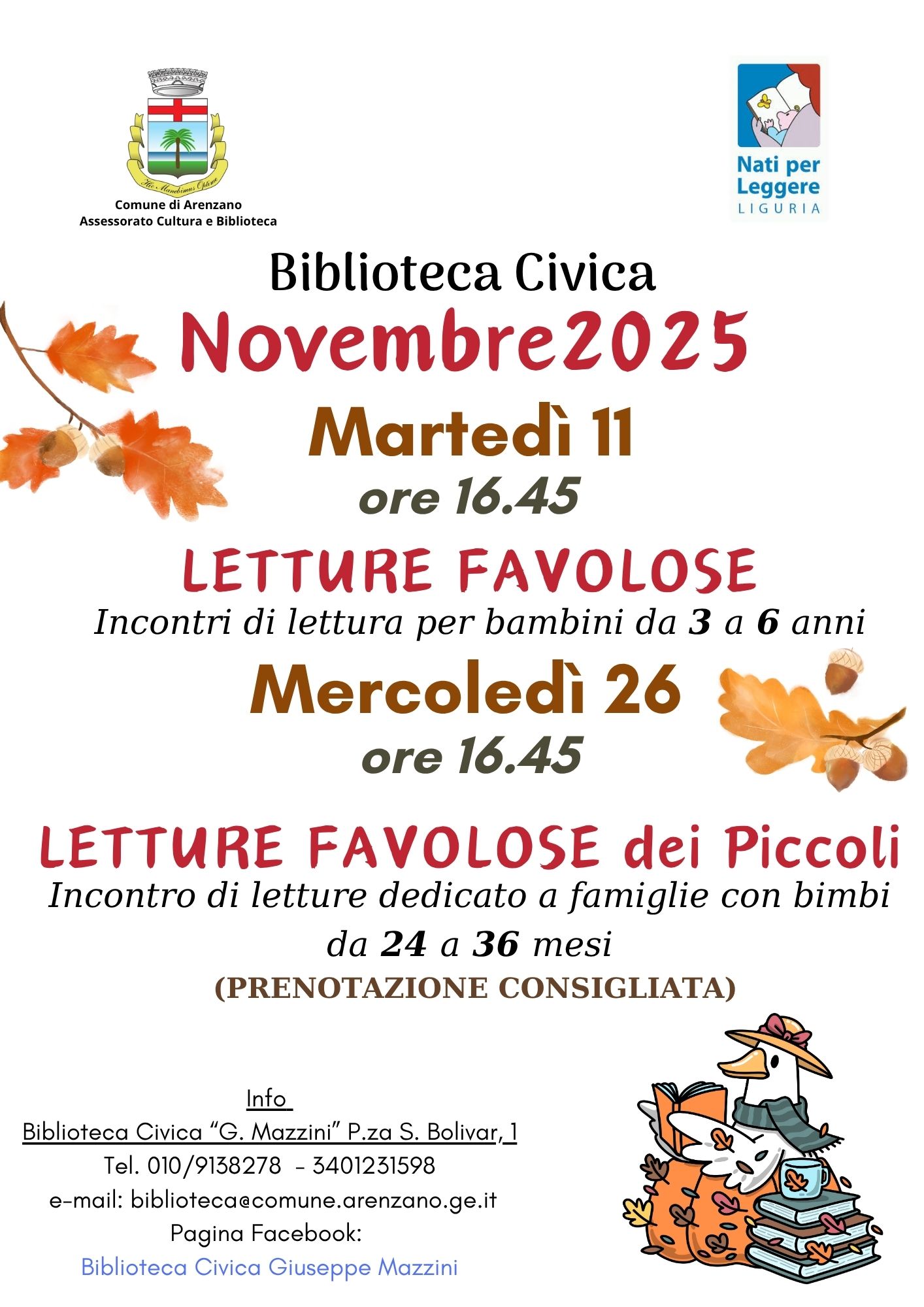 La Biblioteca Civica di Arenzano "G. Mazzini" propone incontri di letture per bambini da 3 a 6 anni.