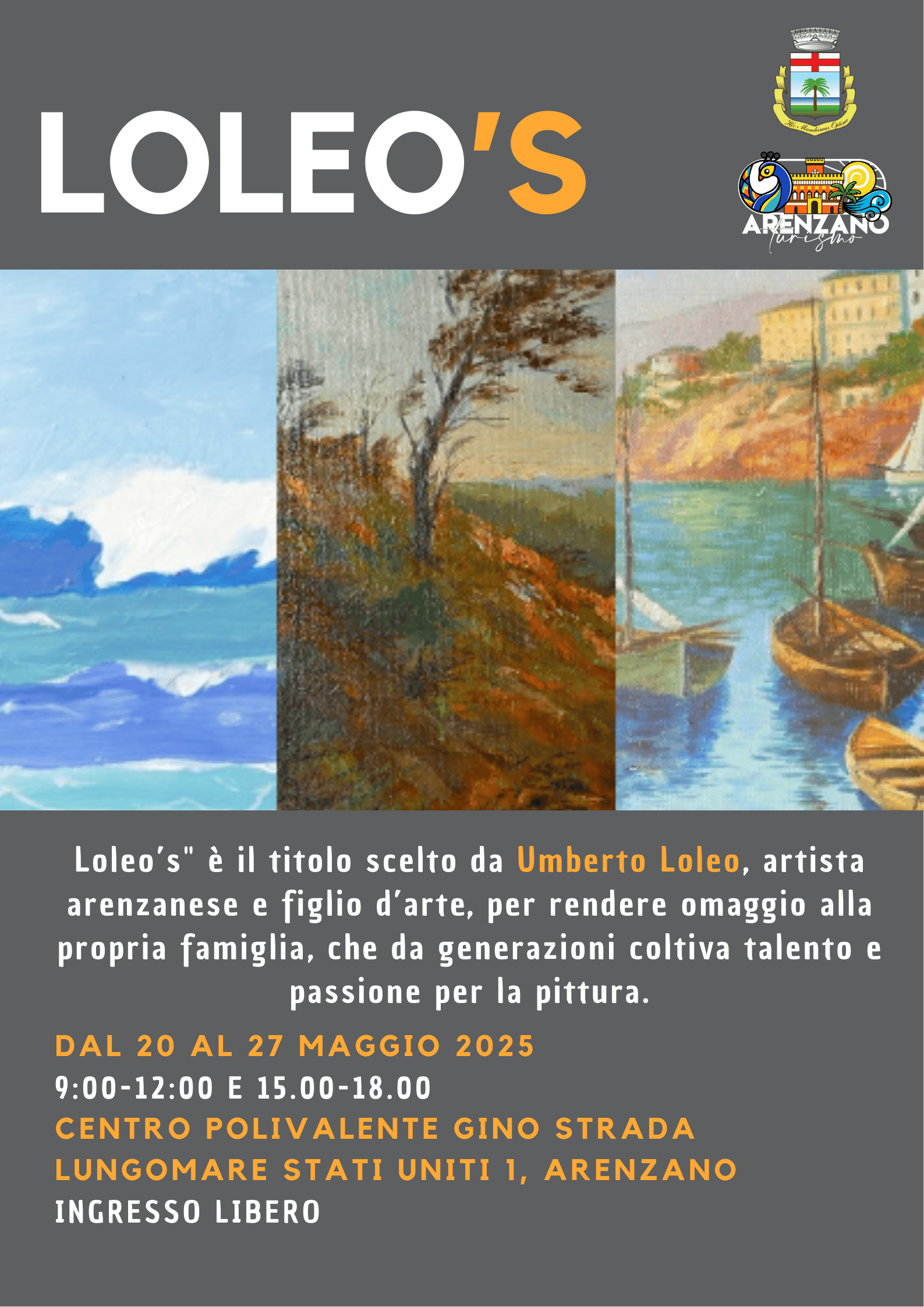 Loleo’s" è il titolo scelto da Umberto Loleo, artista arenzanese e figlio d’arte, per rendere omaggio alla propria famiglia, che da generazioni coltiva talento e passione per la pittura.
