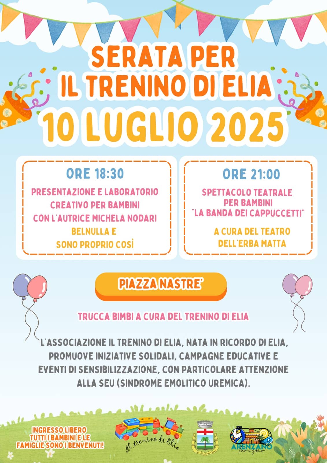 L’evento è organizzato in collaborazione con l’Associazione Il Trenino di Elia, nata in ricordo di Elia e attiva nel sostegno ai bambini affetti da malattie gravi.