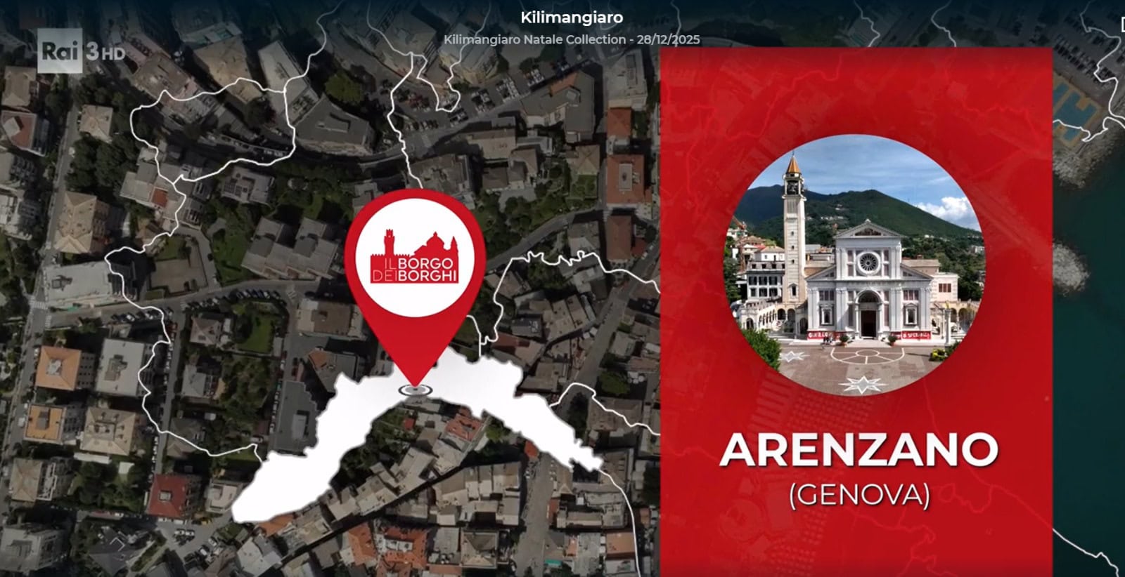 In questa occasione Arenzano è stato scelto come unico borgo rappresentante della Liguria, portando in televisione le sue bellezze naturali, la storia e le tradizioni che lo rendono unico.